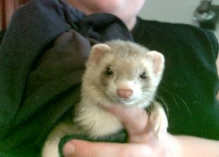 | Critter Care: Ferrets Compiled by Critter Camp Exotic Pet Sanctuary Staff Ferrets are reportedly the third most popular non-caged pet, directly behind dogs and cats in U.S. households. The ‘non-caged’ part may surprise folks. However it is vital to ferrets’ well being that they not spend the majority of their time inside a cage. A caged ferret quickly becomes agitated, bored and depressed. This stress may lead to behavioral problems such as biting, making owners less inclined to play with their ferrets, and thus increasing their behavior problems. Ferrets are members of the weasel family and are related to skunks too. They are born with a scent gland very similar in function to a skunk’s for use as a defense in the wild. All ferrets in the United States must be descented and spayed or neutered before being sold as pets by law, so you won’t get sprayed by a ferret. However they do still retain a musky smell that some people find quite unpleasant, yet others actually like. The odor comes from oils secreted onto their skin. Bathing them often will only increase the oil production and make them smell worse! So you definitely need to be sure you like the unique aroma of ferrets before you acquire them. Ferrets are highly social animals and are infinitely happier and therefore healthier and better pets when kept in groups of 2 or more. Ferrets are kind of like kittens mixed with puppies mixed with lots of caffeine. They are high speed rompers and wrestlers their entire lives, up to 9 years. However they also sleep several hours a day too. The ferrets we have as pets here in the U.S. are European ferrets that originally were bred in captivity to hunt rabbits and other rodent prey for royalty. Therefore their instinct to hunt is very strong and it is not advisable to keep any prey animals (even in secure cages) in the same room as ferrets. Just the scent of the prey animals (such as hamsters, gerbils, mice, rats, rabbits) can cause the ferrets to be aggressive and ‘on the hunt’ all the time, not to mention what will happen once they get their nimble little paws on those cages. Feeding: Ferrets are ‘obligate carnivores’ which means that they are strictly meat eaters in the wild. They need a very high protein diet consisting of a good quality ferret food, such as Totally Ferret. Contrary to popular belief they cannot live on cat food or dog food. There is not enough protein in either. The ferret may seem alright for a few years but then will develop any host of problems including insulinoma, kidney disease, and adrenal disease, if not given an appropriate diet. These are all life threatening and chronic conditions. Many of the rescued ferrets we take in suffer from these due to years of poor diet and living conditions, as well as bad breeding practices. Ferrets are known to enjoy sweets and dried fruit, such as raisins, but these are not good for them at all and can contribute to the serious health problems mentioned above. It is best to just not get your ferret started with these treats. Use the ferret specific high protein treats available commercially such as Bandits, instead. Housing: The ideal situation is a dedicated ‘ferret room.’ This is a room that is ferret-proofed: outlets covered, cords secured out of their reach, vents and ductwork covered with screening, window screens reinforced, good heat and ventilation, and regularly checked for any potential hazards. Ferrets are escape artists and can get around, through and under almost anything! A good rule of thumb is they can squeeze through any opening that they can stick their head in. They should also have a large multilevel cage with hammocks, hideout blankets, snuggle sacks, litter box, food dishes and a water bottle where they can be secured safely when you are gone from the house or asleep for their safety. Ferrets can get into many dangerous situations due to their curiosity and ability to squeeze through small openings. Unfortunately many ferrets have been hurt or killed after getting inside of recliners, appliances, etc. as well as slipping outside when the door opens. For these reasons it is not advisable to let the ferrets have the full run of the house, and to only have one specific room set aside for them. Place several litter pans in the ferret room in the corners and they will use them about 75% of the time. Ferrets are never totally potty trained, so expect to clean up after them regularly. Because they have a very high metabolism they need to have access to food and water at all times, and they need to eat about every three hours at least. They will also only eat as much as they need, so it is not necessary to ration their food, just have some available at all times. Due to their fast digestive system they also defecate and urinate about every three hours. It is pretty smelly stuff too. (Interesting fact- well interesting for us animal folks anyway- the more carnivorous an animal is the more its poop stinks!) Keeping ahead of the potty issue is a constant chore. As far as types of litter, pellets are the most highly recommended. The cheapest source for pellet litter is to use home heating wood pellets. A 40 lb bag costs about 5$ at hardware stores. Availability in the summer can be a problem, however. As a back up, Yesterdays News type cat litter works well, and there is actual ferret litter made too but it is expensive. Clumping or clay cat litter is not recommended as it can harm the pads of their feet and be ingested with their food, causing blockages. Fun things to do with your ferrets: • Play war dance with them – pat your hands on the floor in front of the ferret like you are coming after him - he may hop up and down and side to side. • Obtain a ferrets harness and leash of appropriate size for your ferret, fasten securely, and take them for a walk out in your yard. They will love to smell all the exciting new scents, slither through the grass, and dig in the ground. Watch them closely be