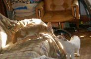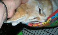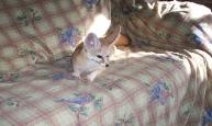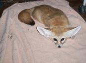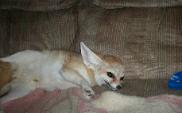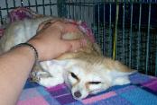 Fennecs are the smallest breed of fox in the world, and are native to the Sahara Desert in Africa, in the wild they eat bugs, worms and very small animals such as baby birds & tiny lizards and occassionally fruits. They live in dens in colonies somewhat like condominiums- each to themselves, sometimes in families, but linked together. They live 10-15 years and are about 4 pounds full grown. Their large ears are designed to dissipate the desert heat, and to listen for their tiny underground prey. Fennecs have been bred in captivity for several decades in the U.S., no fennec fox currently as a pet in the U.S. has been wild caught. They have not been tamed however to the extent that the Russian Silver Foxes have which were bred specifically for that quality for 50 years. Fennecs are adorable, enchanting creatures that many people think they want to own. However they are challenging pets and often owners are unprepared for their needs and behaviors. The following information is based upon Critter Camp's extensive experience actually caring for several fennec foxes. There will be some unusual exceptions but this information is true for the majority of pet fennec foxes. However each fennec has its own personality, all 5 that we have had so far have been completely unique. Fennecs are very shy, they do not seek out attention. Occassionally they will dart up to their person and want to be petted, but it will be fleeting. Fennecs like to have their ears stroked as well as the top of their head and back of the neck. Generally they do not want to be touched below the waist or on the tummy. They do not like to be held for more than a few moments. They often like to be near you but not touched. No matter how much the owner wishes they would, they simply do not cuddle. Fennecs are happy kept alone, or interacting with the family cat or dog ( as long as the dog is not a hunting species- the dog's reaction to the fennec will be the same as it would be to any small prey animal, not to another dog.) They do not need to be kept in pairs. As a matter of fact they may not even acknowledge another fennec's presence, let alone play with it, unless they are a bonded breeding pair. Foxes are not pack animals like dogs or even pride animals like cats therefore they do not respond to 'training' methods. They can be conditioned to expect certain things like opening the refrigerator means food, but they will not come when called although they may recognize their name and look up when it is spoken. They will not learn tricks or walk on a leash. They may walk you on a harness but they can escape easily and if they run off they are gone, they do not return home nor respond to being called. Fennec foxes must be kept indoors in all but the most temperate of climates. They should stay between 65 and 80 degrees all of the time. If they are allowed outside in an pen it will have to be completely enclosed sides, top and bottom, as they will dig or climb out of anything. Some owners keep them in their own room, some keep them in a large "Ferret Nation" type cage when unsupervised (such as when the owner is gone or asleep) and then allow them to be free range in the house the rest of the time, as we do. They need to be out of cage and with people as much as possible for them to become and stay somewhat friendly. Fennecs do not "play' interactively like dogs or cats do. Once in awhile they will carry off a cat toy to hide in their bed, or chase around another pet like a cat or dog, but they don't fetch or play tug or chase a string. They will often beg for treats though, which truly is adorable. Fennec can and do bite. They have sharp needle-like teeth and do not hesitate to use them when startled or simply want to be left alone. In general they do not scratch people, but they do like to dig. They will dig up carpets, floors, and into furniture. They dig more when they are bored or anxious, so the more interaction you can give and free range time the less likely they will dig destructively. Fennecs make a few vocalizations and they can mean different things at different times. The 'bark' is a low gutteral barking sound reserved usually for when they are upset or threatened. A happy well cared for fennec will rarely bark. Male fennecs will make an very odd sound that is similar to the raptor calls on the Jurassic Park movies, kind of a chirping trill only deeper as a mating type call. Neutered males will not usually make this sound. They will also make a sound that is like a cross between a purr and a growl, and it usually means they are about to bite. They make this when they are being held and want to be put down for example. The most common sound is the squeal or 'eeeeing' . This generally means “yay! I am so glad to see you!”It may even mean they want to be petted. But occasionally it means go away. You have to learn to read the individual fennec to be sure. Fennec fox behavior is also individualized. Usually when they roll over on their side or back they want to be petted- but still only touch them on the head & ears & neck in general. Some do want a belly rub, again you'll have to learn the individual fennec to know what they want. Sometimes when they are excited they will swish their tail, and flatten out like a pancake, often this is accompanied by the squeal. Fennecs are naturally nocturnal, but they can be conditioned to be awake during the evening and even daytime with enough interaction, similar to a house cat. The more they are entertained in the daytime the better they will sleep at night. If they do not have enough exercise during the day they will dig and make noise all night. No matter what any breeder or fan says fennec foxes cannot be potty trained. A small percentage will instinctively use a litter box or puppy training pads nearly all the time. However the vast majority simply go wherever and whenever they want- in their bed, on the floor, on the couch, on your keyboard, in their food, then they will wal