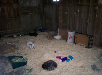 | Indoor Rabbits in Cages NO MORE!!! All of the indoor rabbits have been moved to our new community free range setting! 29 happy hopping bunnies afoot!!! |