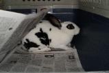 Two Californians found nearly frozen to death in a block of ice in a box with a note that said "If you want to kill them, kill them. We don't want them anymore" Two more bunnies destined for euthanasia stopping over here at Critter Camp on their way to Tender Tails for adoption.  |